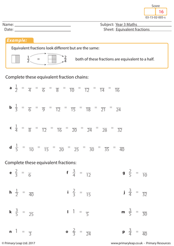 Equivalent fractions math worksheets